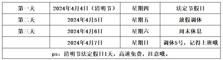 清明节放假3天调休1天