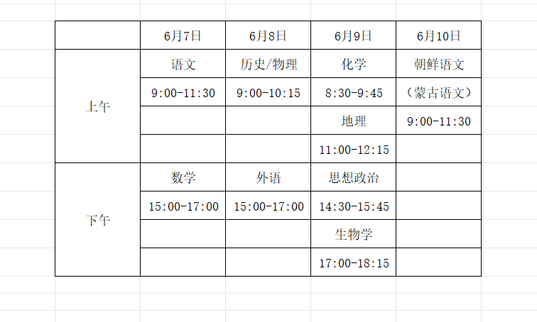 黑龙江2024高考具体科目考试时间安排为: